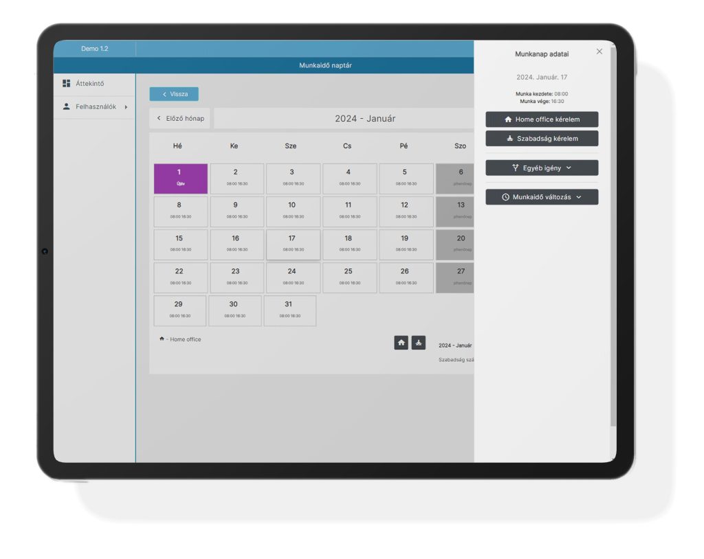 Szeretném bemutatni a saját fejlesztésű webes munkaidő nyilvántartó programunkat. A felhasználók létrehozása után, minden felhasználó igényelni tud szabadságot, home office-t, beteg szabadságot stb.
